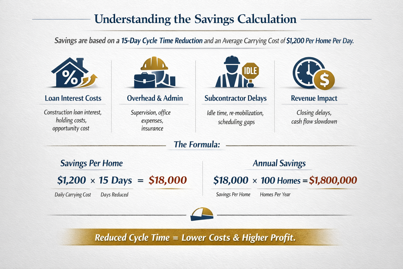 Cycle Time isn’t a schedule problem. It’s a financial lever. Every additional day a home stays in construction increases carrying costs, delays revenue, and compounds operational friction.